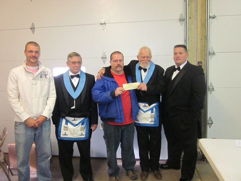 Draw Master center with Worshipfull Master and Senior Warden. Waymart Lodge # 542 donates to Waymart Volunteer Fire Co.