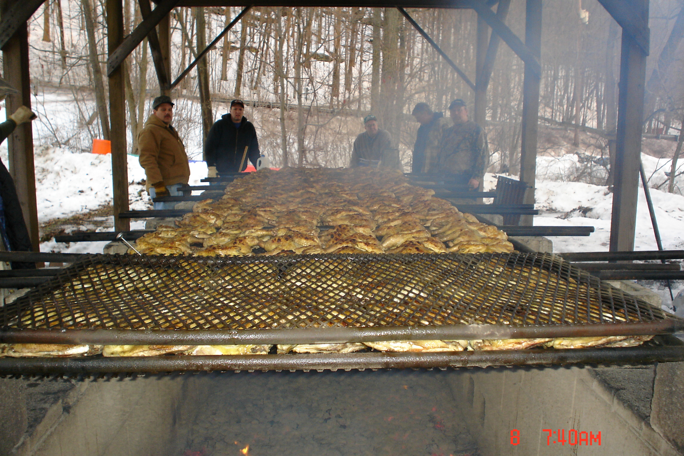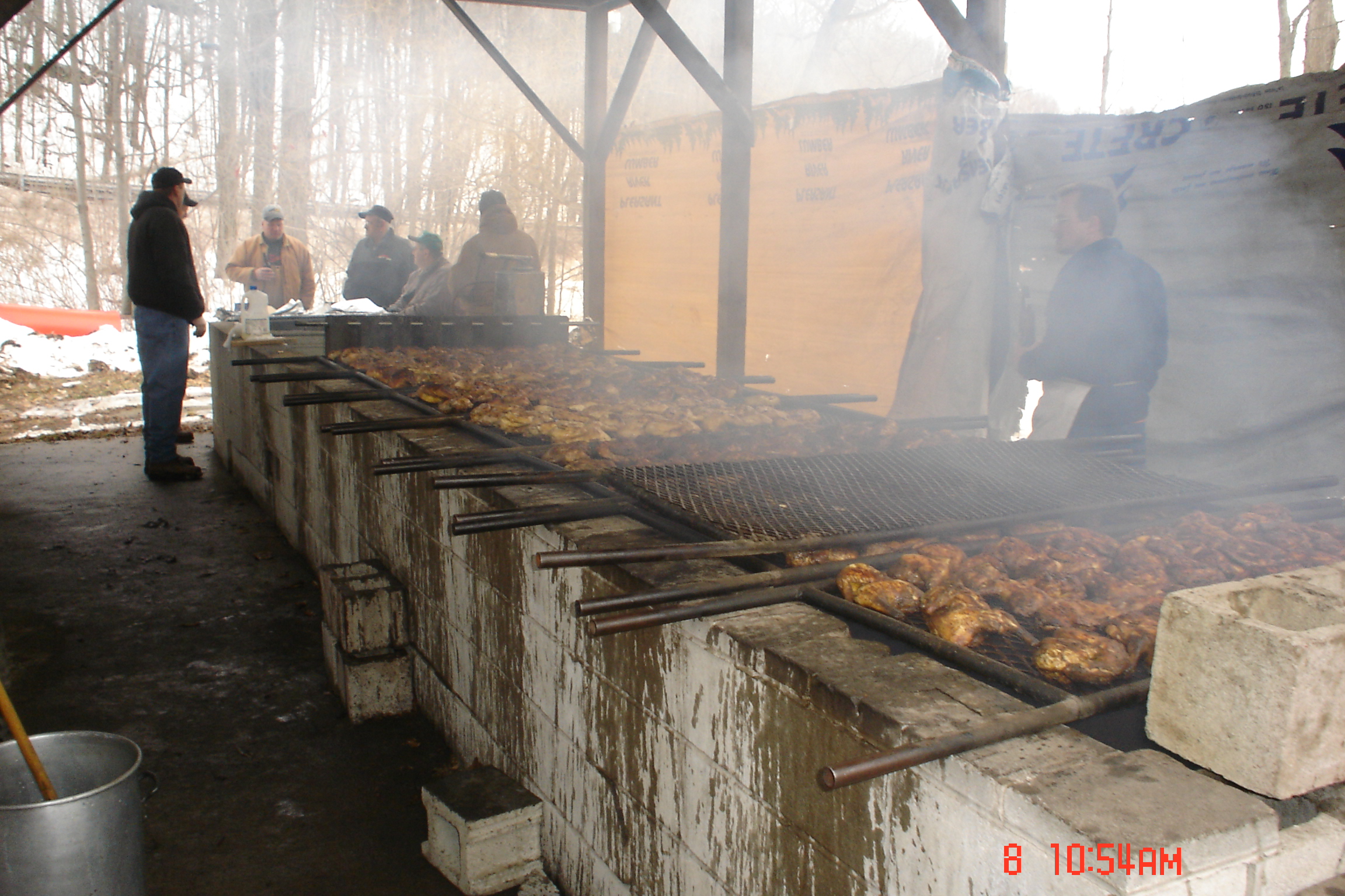 The Winter Chicken Barbecue is a lot of fun for the members, Just think of starting a fire at 4:00 am when it's 20 or 30 degrees below 0. Then the fire is so high the pit roof starts to catch on fire, but, no problem we have water spray tanks filled that were in a nice warm house overnight. Only one problem they freeze up in 5 minutes out side, but we always manage to control the fire with no harm done.
